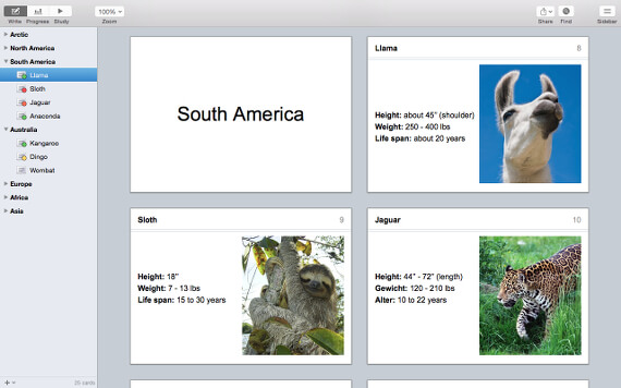 Drag and drop images from your Mac or any website right to your cards. Break up larger facts into lists. Use text formatting to highlight important things.
