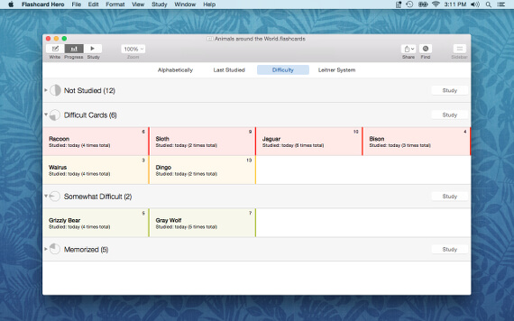 Focus on the difficult cards and don't waste time going through cards that you already know. The app also supports the Spaced Repetition memorization technique (also known as Leitner System).