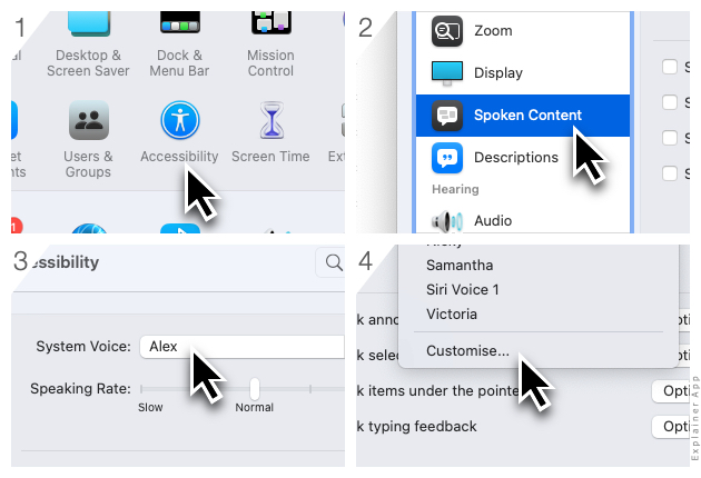 - In the System Preferences, select Accessibility > Spoken Content